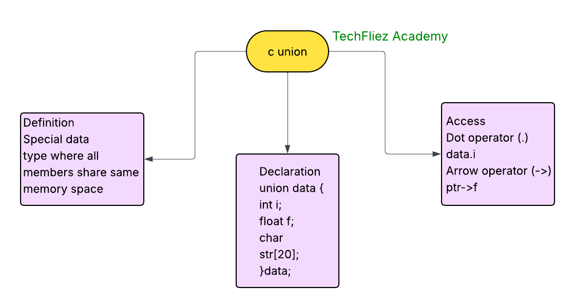 You can access the members of a union just like you would with a struct, using the . (dot) operator. However, remember that only one member holds a valid value at a time.
