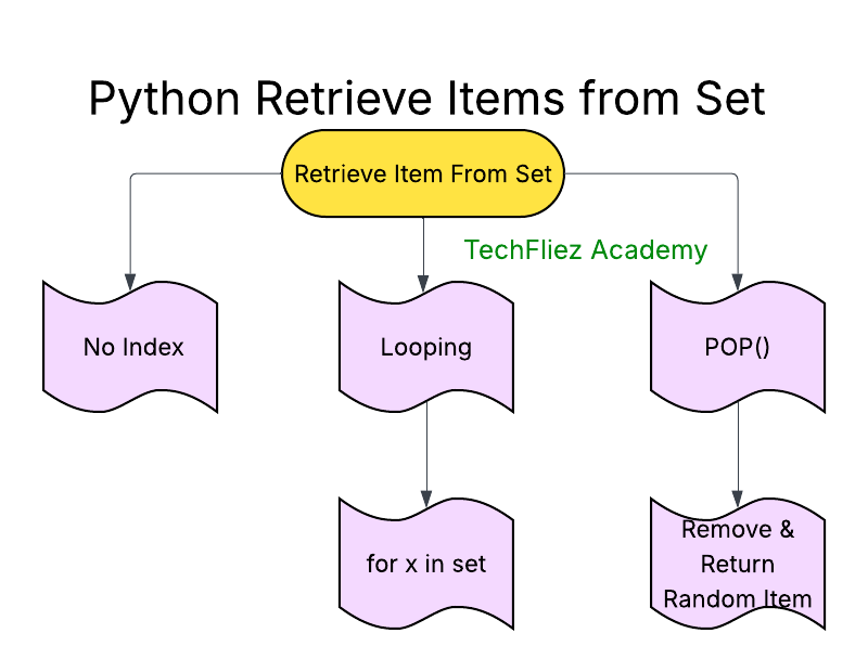 In Python, you can “fetch” or retrieve items from a set in various ways. Since sets are unordered collections of unique elements, they don’t support indexing, so you cannot directly access an element by position like you would in a list. Instead, you have to use iteration or other methods.